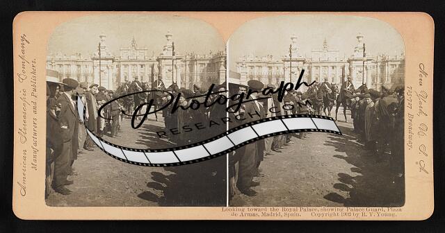 Looking toward the Royal Palace, showing Palace Guard, Plaza de Armas, Madrid, S