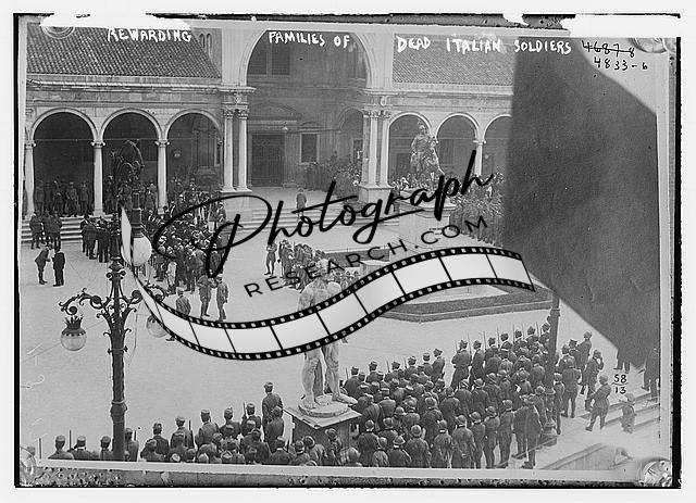 Rewarding families,dead Italian soldiers,statues,casualties,aid,sculptures,crowd