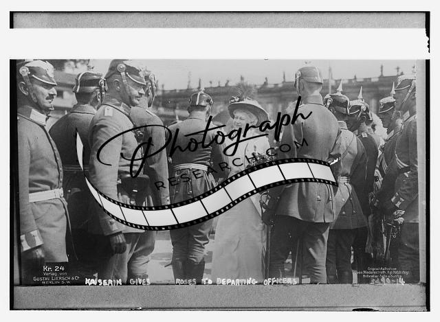 Kaiserin gives roses to departing officers,Military,men,woman,Bain News Service