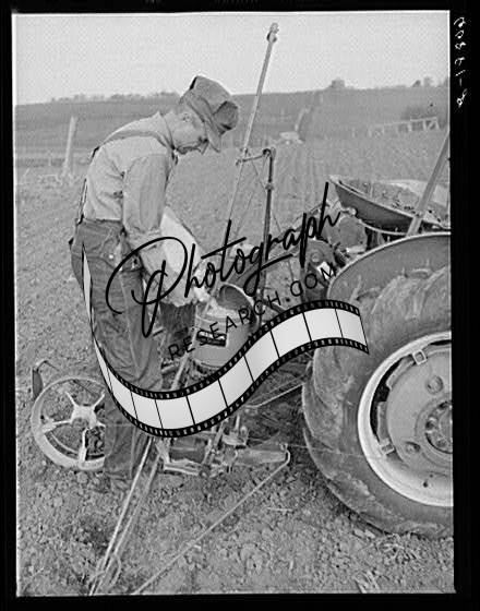 Title: Putting the stake which holds the wire in the ground. Corn planting, Jasper County, Iowa