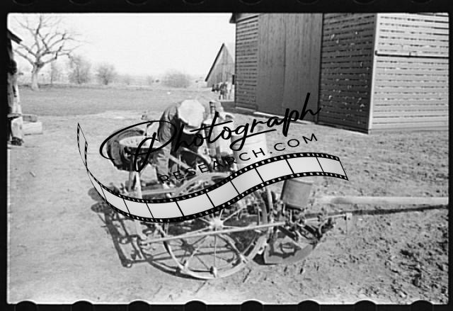 Title: Oiling planter preparatory to corn planting, Jasper County, Iowa