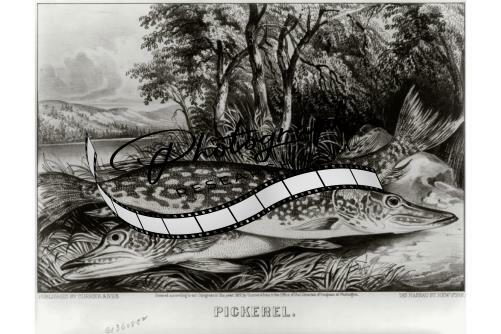 Pickerel,c1872,Currier & Ives,Photograph,fish,water,trees