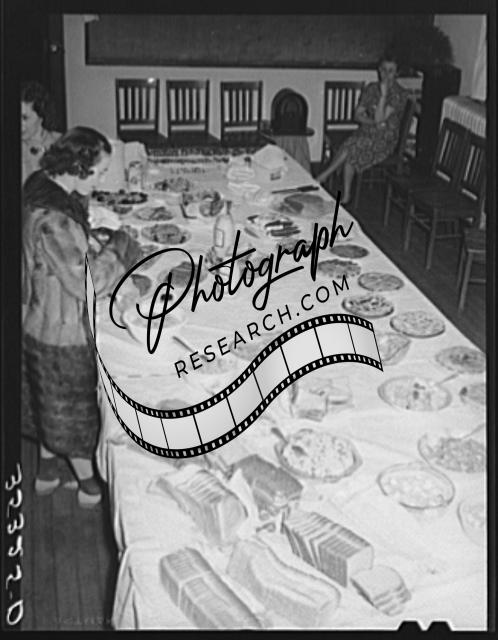 Title: Wife of Jaycee member bringing food to the buffet supper at the high school. Eufaula, Oklahoma. See general caption 25