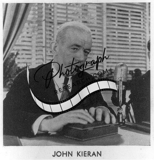 John Francis Kieran, 1892-, head-and-shoulders portrait, seated, by microphone