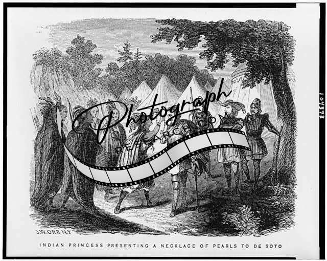 Indian princess presenting necklace,pearls,Hernando de Soto,Florida,FL,1858