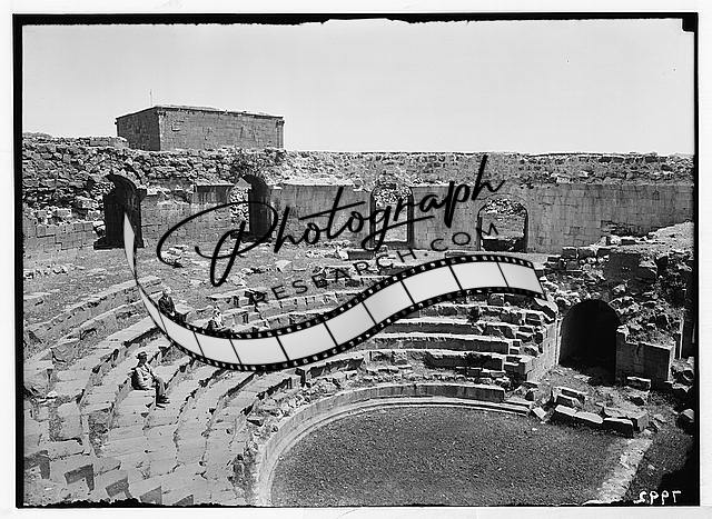 Title: Jebel el-Druze & Hauran. Shahbah (ancient Philippopolis founded by Philip the Arab, 232 A.D.). Remains of colonnade along paved street