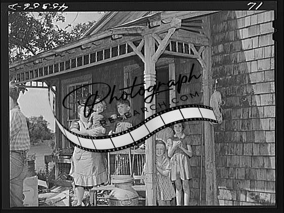 Title: The family of Gottlieb Zahler in their new farm in Lacona, New York, to which they moved from the Pine camp relocation area. In their new home in Lacona, New York