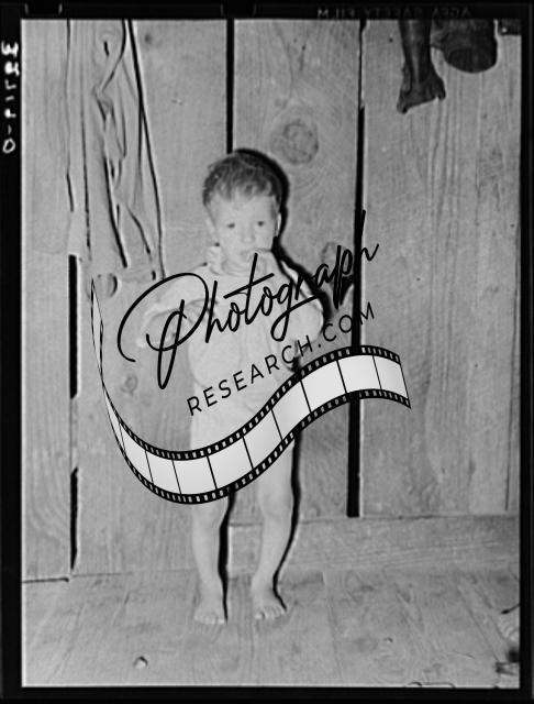 Title: Baby of family living on relief. Notice the homemade cradle. Near Jefferson, Texas. Housing conditions in this section are particularly bad