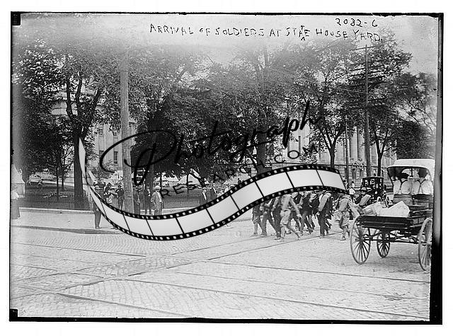 Arrival of soldiers at state house yard,carriage,Bain News Service,street