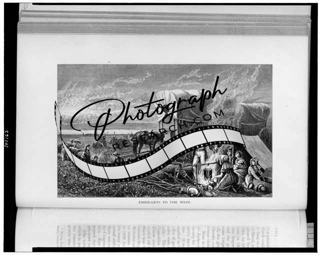 Emigrants,West,covered wagons,frontier,pioneer,travel,campfire,tent,W Cary,c1880