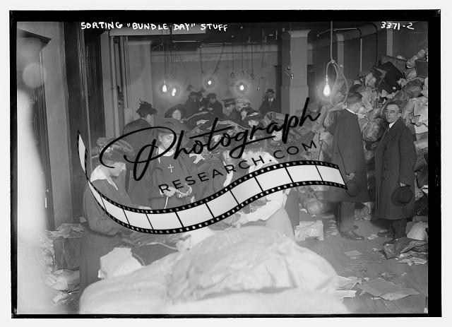 Sorting 'Bundle Day' Stuff,women working,piles of things,Bain News Service