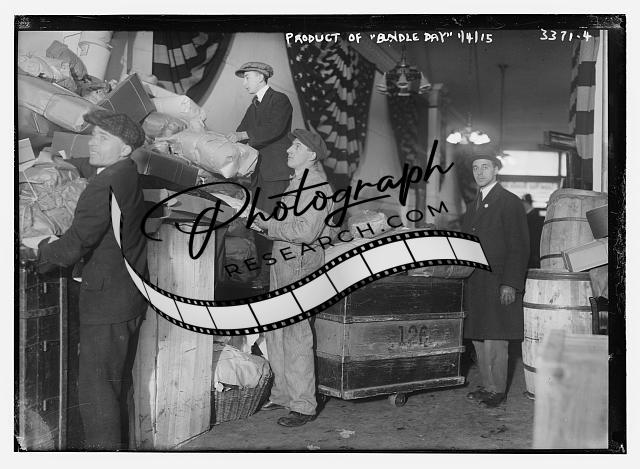 Product of 'Bundle Day',January 4,1915,packages,men,Bain News Service
