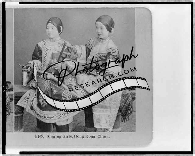 Singing Girls,Hong Kong,China,Children,Traditional Dress,Musical Instrument,1901