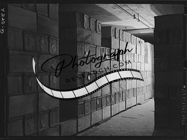 Title: Onions in cold storage warehouse. Jersey City, New Jersey. They are kept in 'cooler room'