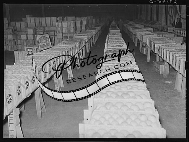 Title: Frozen eggs in freezer room at cold storage warehouse. Jersey City, New Jersey