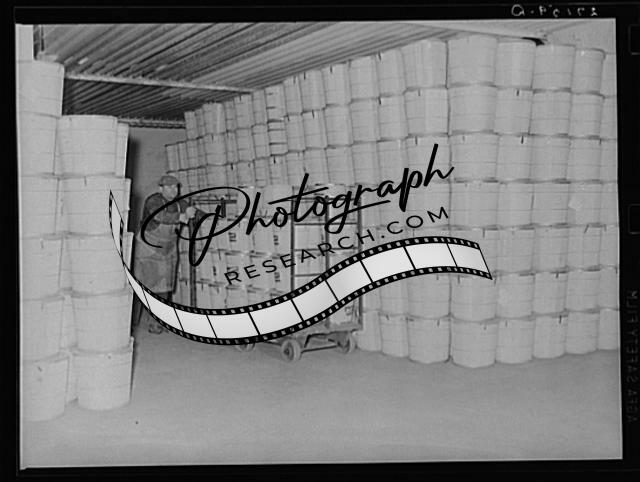 Title: Cold storage warehouse. Jersey City, New Jersey. Butter stored in 'freezer room'