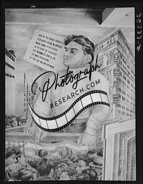 Title: Detail of mural painted by Ben Shahn at the community building. Hightstown, New Jersey