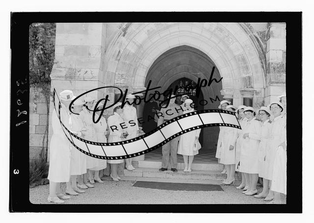 Wedding at St. George's Cathedral on June 3,1942. Bride & groom,Jerusalem
