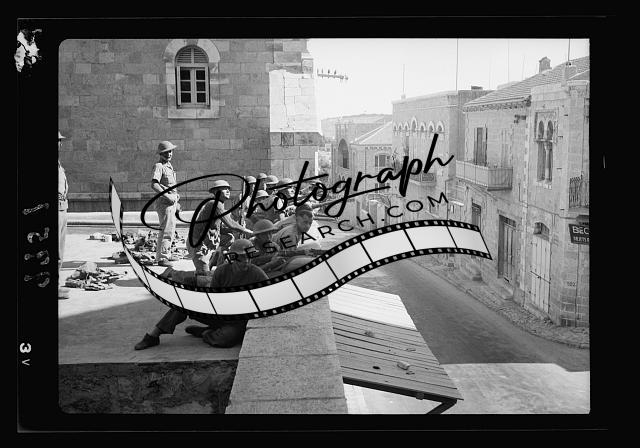Airplane over Jerusalem & military force at Damascus Gate,Notre Dame,1938
