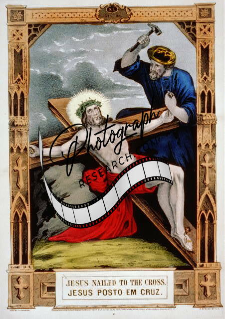 Jesus nailed to the cross,Jesus posto em cruz,c1848,Wooden cross,religious
