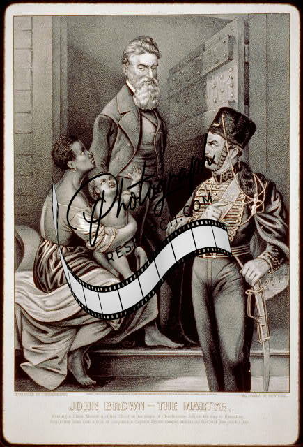 John Brown--the martyr,c1870,woman with baby,child,two men,doorway,Currier,Ives