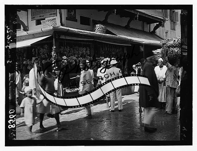 Banana stand in the market,Zanzibar,Tanzania,East Africa,1936,Matson Photo