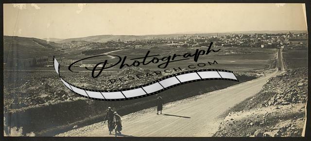 Arab men,woman walking,road,colony,Jerusalem,c1900