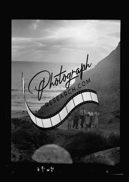 Title: Jewish coastal colonies Herzlia, Ra'nana, Nathania, Khudeira. Nathania. The beach with bathing houses below the bluff