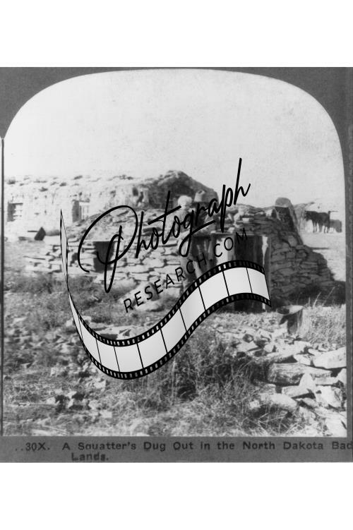 A squatter's dug out in the North Dakota Bad Lands,c 1905,stone dwelling