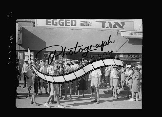 Title: Jewish protest demonstrations against Palestine White Paper, May 18, 1939. Young men subscribing or 'enlisting' [Jerusalem]