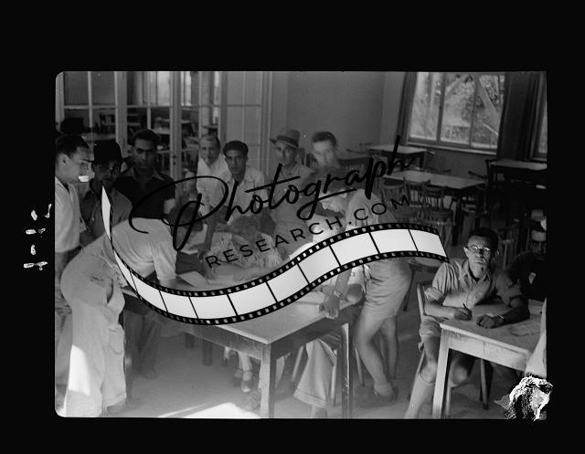 Title: Jewish protest demonstrations against Palestine White Paper, May 18, 1939. Young men subscribing or 'enlisting' [Jerusalem]