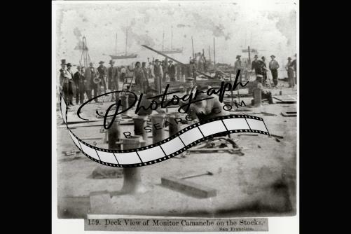 Deck view of USS Monitor Camanche,Ironside ship built in San Francisco,1866