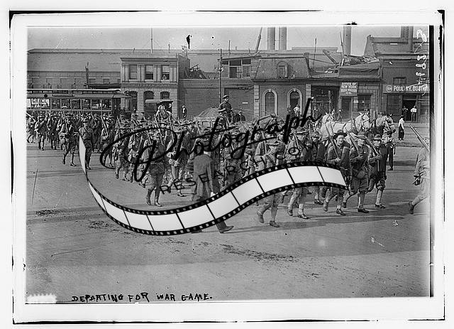 Departing for war game,1910-1915,Military,uniforms,Bain News Service