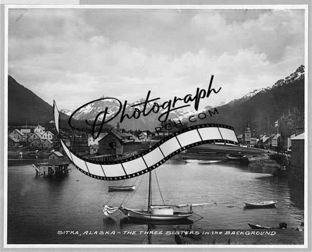 Three Sisters Mountains,Sitka,Alaska,AK,United States,Waterfront,Boats,c1915