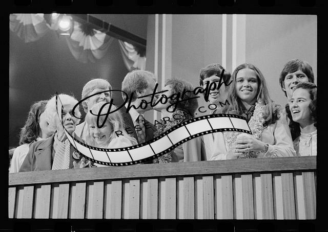 Jimmy and Rosalynn Carter kissing, surrounded by family, including Amy and Lillian, at the Democratic National Convention, New York City