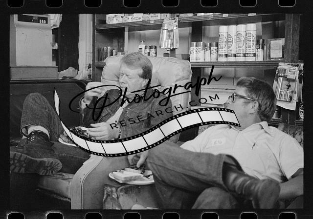 Jimmy Carter and his chief speechwriter, Pat Anderson, working aboard the "Peanut One" campaign airplane
