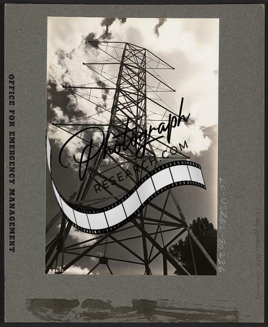 Electric power line tower,1938-1945,Electric Lines,clouds,History,tree
