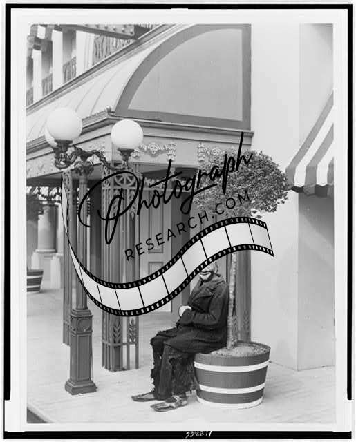 Joe Jackson,seated beneath tree in half-barrel,Clown,1940