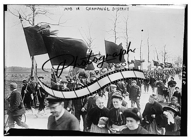 Mob in Champagne district,people walking,waving flags,Bain News Service