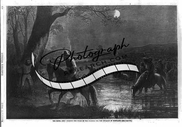 Rebel army crossing the fords of the Potomac for the invasion of Maryland,1862