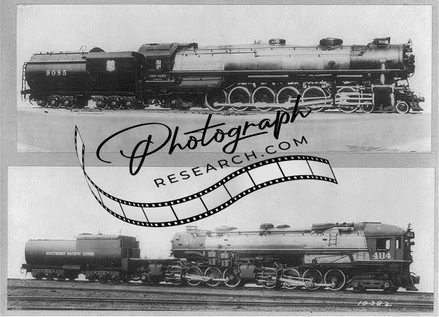 2 locomotives: Union Pacific,Southern Pacific,Trains,Railroads