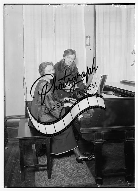 Dux,Mrs. Carlyle Scott,women,wives,playing piano,keys,sheet music,fur lined coat