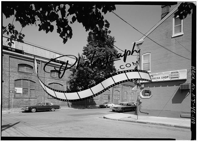 Title: VIEW WEST ON MOTT STREET AT HUDSON STREET LEFT-BUILDING 62 MOTT STREET ANNEALING HOUSE (c.1900) - John A. Roebling's Sons Company & American Steel & Wire Company, South Broad, Clark, Elmer, Mott & Hudson Streets, Trenton, Mercer County, NJ