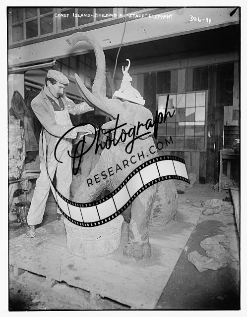 Building a 'Staff' elephant,Coney Island,Brooklyn,New York,NY,man