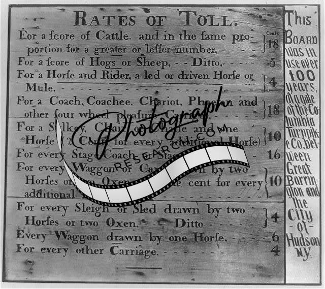 Rates of Toll for cattle,hogs,sheep,horse,rider,Gate