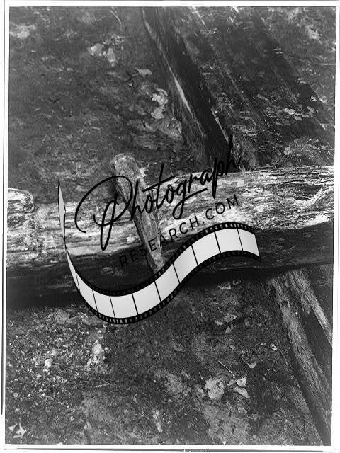 Railroad track,wedge,longitudinal timber,iron rail,crosstie,Warrenville,SC,1944