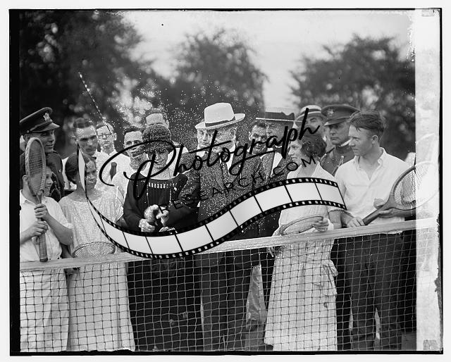 Presdient & Mrs. Coolidge on tennis courts of monument gardens,Washington,DC