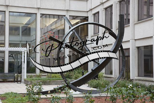 Title: Copper sculpture 'Full Circle: Profile of Courage' in the John F. Kennedy Federal Building, Boston, Massachusetts