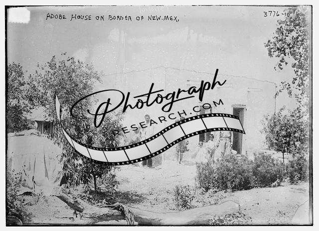 Adobe House on border of N.M.,New Mexico,family,children,trees,dwelling,Bain