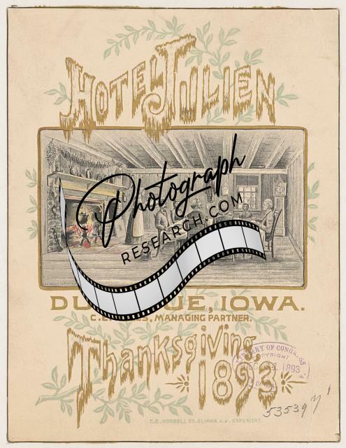 above] Hotel Julien. [below] Dubuque, Iowa. C.E. Wales, managing partner. Thanksgiving, 1893